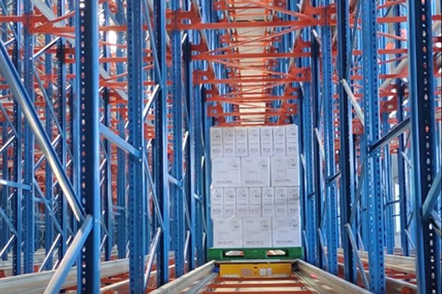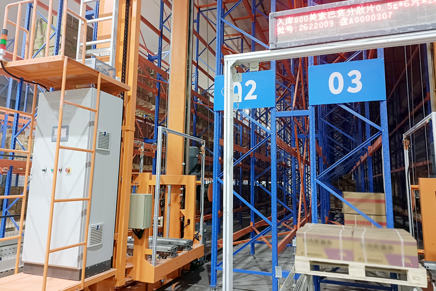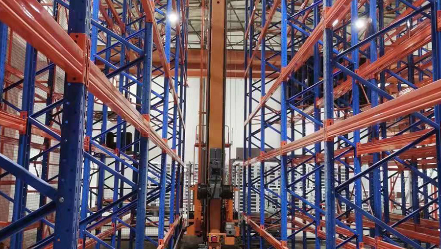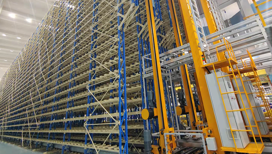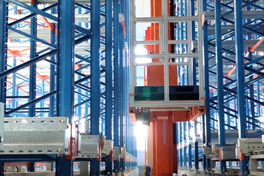 本方案總貨位4352個,高度20m。由6套直式巷道堆垛機系統、立體貨架系統、6套RGV、6套輸送線、6套拆疊盤機、稱重系統、RFID系統、WMS倉庫管理系統和WCS倉儲監控系統等組成。提高3倍以上倉儲空間面積,綜合生產成本降低20%以上。